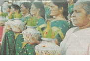 Students of a school in the city suburbs perform Bharatanatyam at last Sunday’s event to welcome the new Archbishop of the Madras-Mylapore diocese, Most Rev. George Antonysamy and to say thank you to the outgoing Archbishop, Rev. Dr. A.M. Chinnappa. The event was held after concelebrated Holy Mass at St. Bede’s School ground, San Thome at which many bishops participated. Below, nuns and lay people offer traditional welcome.