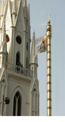 Really now! Dhvaja sthambam (flag pole) at the Santhome Church!