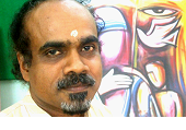Jesuit Father Roy Mathew Thottam looks every inch an artist, from goatee beard to cream-colored kurta, the long shirt so beloved of poets and artists in India, and the jeans that complete the picture. Balding and looking older than his 45 years, the priest from Kerala is a small figure in the corner of the big hall of the Kolkata Salesian center. Father Thottam holds degrees in fine arts from Christ Church university in Canterbury, in the UK, and folklore from Palayamkottai. He spent a year with veteran Indian Christian artist Jyoti Sahi*, learning from and working with him. He has had five solo exhibitions of his paintings and four group exhibitions. Based in the Jesuit Institute for Religion and Culture in Cochin in Kerala state, the priest has been prolific, producing some 600 paintings over the past 20 years.