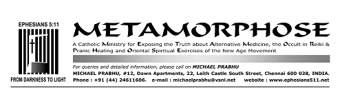 I have just arrived in Bangalore & am writing to you in my personal capacity – with this programme at Christ College just hours away!! Apart from sharing Michael Prabhu’s concern & abiding by the Guidance given by the Vatican on issues such as “Pranic Healing”, “Reiki”, etc., I strongly feel that by going in for these forms of Healing – it is an OUTRIGHT denial of JESUS as HEALER. These forms of Healing may seem harmless & effective initially but have serious repercussions for apart from tapping oneself as the source of POWER, other powers are invited to dwell in us. I feel that our Priests, Religious Sisters & Lay people must rather exercise their Faith in JESUS – esp. in the Eucharist as we “Say but the WORD & I WILL BE HEALED.
