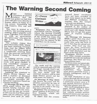 I would really appreciate you setting the record straight in your writing and list my blog as being against the Maria Divine Mercy Warning Second Coming messages.