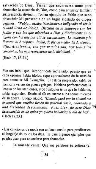 Comparison of two typical pages from Renovacion Evangelica (Evangelical Revival) allegedly dictated to the alleged stigmatic Catalina Rivas by Jesus Himself in 1996 to Formacion de Predicadores (Training Preachers) by José Prado Flores and Salvador Gómez of Guadalajara, Mexico, taken from the 1992 edition.
