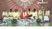 The procession of Bishops led by the Apostolic Nuncio to India, Salvatore Pennacchio, moved to the venue from the Cathedral Basilica of St. Thomas to the unmistakable Carnatic