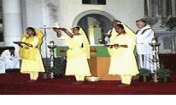 Fr. Paul started his concert with the famous keerthana ‘Vatapi ganapathim’*. Then ‘Salathulla Salamulla’ taken from the Holy Koran set to ‘Anandabairavi’…As soon as the performance was over the first citizen of the country was so impressed by the performance that he called Fr. Paul for a personal meeting and congratulated him on the unprecedented performance. He went on to describe his performance as ‘one which is opening new vistas in the tradition of Carnatic music‘.