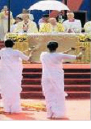 About 125 Bishops of the Latin Rite in India, the Conference of Catholic Bishops of India (CCBI) had their biennial meeting 6-12 January 2011 at the Sacred Heart Seminary, Poonamallee, Chennai. “Catechetical Education” was the theme of the meeting. The seven-day plenary began January 7. On January 9, the prelates attended a public reception by the Madras-Mylapore archdiocese at which Tamil Nadu state Chief Minister M. Karunanidhi was invited to preside. Karunanidhi is an avowed atheist. The Bishops are the successors of St. Peter and owe sole spiritual allegiance to Jesus Christ. But guess who welcomed the atheist and the disciples of Christ at the public reception at St. Bede’s School grounds in Santhome? Ganpati did.