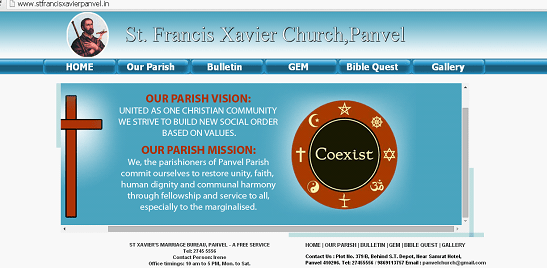 The image below is from the web site of a Bombay archdiocese parish, St. Francis Xavier’s Church, Panvel. Their mission and vision is “co-existence” with other religions “to build a new social order based on values”.