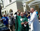 The day produced some extraordinary cultural encounters. For example, the Buddhists, led by the Dalai Lama, quickly converted the altar of the Church of San Pietro by placing a small statue of the Buddha atop the tabernacle and setting prayer scrolls and incense burners around it.
