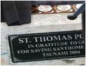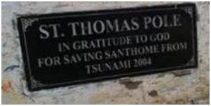 “In gratitude to God” for “saving” Santhome from the tsunami, a sort of memorial was erected at the cemented-mounted pole with an inscribed plaque.
