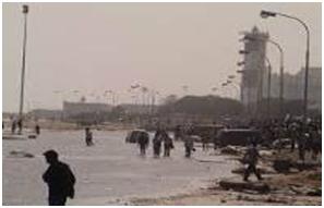 Now compare the above five images of the Santhome waterfront with those of the Marina and Srinivasapuram/Foreshore Estate beaches on the previous pages. The reader will be able to appreciate one of the many reasons as to why the tsunami wave did not reach the Cathedral whose spire is visible in the background.