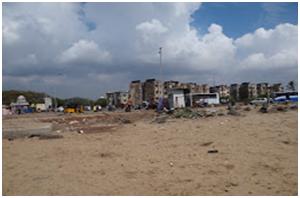 Local denizens have witnessed that the Marina and Foreshore Estate beaches are flooded with water during the annual rainy season known as the monsoon. Vast areas of beach sand become pools of water in which children frolic, constantly replenished by the wind-driven waves of the sea. This did not happen on the Santhome beach which during the 1980s was annexed piecemeal by fisher-folk with political patronage so that almost no trace of the beach remained except a narrow strip where beach meets sea beyond the service or loop road that connects the Marina with Foreshore Estate.