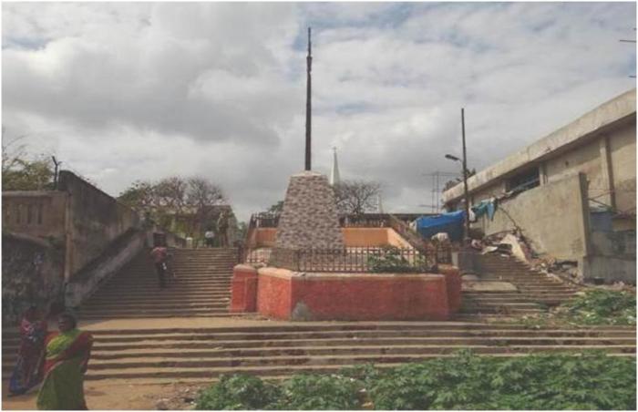 The above two photographs of the Santhome beach steps also showing the “St. Thomas pole” were taken by me. The one on the left is taken from the service road that runs through the beach at sea level.