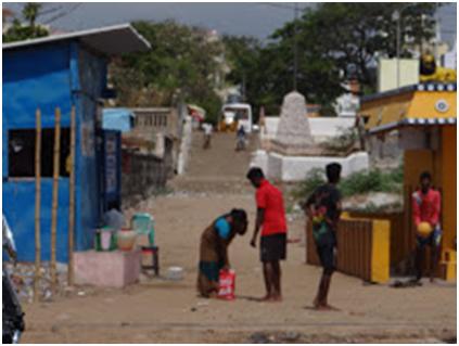 So, the Santhome beach had hundreds of tightly-packed-together residential constructions that stood between the tsunami/sea and the steps that lead up to the approach road.