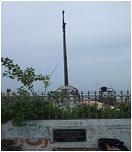 Further, recently an inscription has been added to the pole on the church side: “ST. THOMAS POLE: IN GRATITUDE TO GOD FOR SAVING SANTHOME FROM TSUNAMI 2004″…