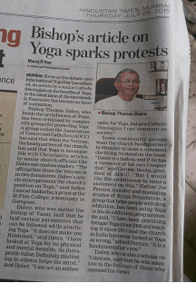 On June 22, Bishop Dabre wrote a pro-yoga piece on his Facebook page when there was absolutely no call for him to do so. It was even reproduced in the Bombay Church organ, The Examiner, July 4-10, 2015.
