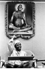 Swami Muktananda (1908-82) was an Indian man of great charisma who favored dark glasses and gaudy robes.