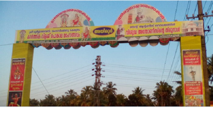 For the village and the people at large, this novel experience of fellowship is provided by the St. Anthony’s feast of Ayiroor parish and the Karthikavilaku Ponkala festival of Durgadevi Mahavishnu temple of the same village. The two events are being celebrated in unison and co-operation by the believers of both the religions.