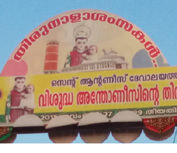 The hoisting of the flag of harmony and tolerance started with the combined advertising boards and publicity materials being displayed all over the region. The temple festival is to be held between Nov. 23 and 25, while the church feast will be held between Nov. 27 and 29. The arches and flex boards give the details of both the celebrations side by side. In this way, the images of St. Anthony and the church as well as those of Lord Vishnu and the temple appear on the same arch.