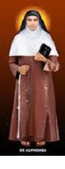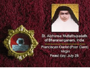 Alphonsa, (August 19, 1910 – July 28, 1946) was a Syro-Malabar Catholic Franciscan nun who is now honoured as a saint. Sister Alphonsa became the first native Indian to be canonized in 2008. She is the first woman of Indian origin to be canonized as a saint by the Catholic Church, the second saint to be canonized in India and the first canonised saint of the Syro-Malabar Catholic Church, an Eastern Catholic Church of the Saint Thomas Christian community.