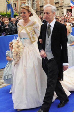 For this reason, Catholic families, especially those of a higher level in society, have an even stronger obligation to set a good example by choosing elegant and modest wedding apparel. Let me point out that many noble families in Europe still follow the traditional morals and standards for wedding apparel, choosing beautiful long-sleeved white gowns and traditional veils for the bride (as you can see in various photos in this article). As a result of this, all of society benefits because their gowns are discussed among the ladies and girls and copied by many.