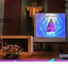 Above: Yoga guru Fr. Joe Pereira of the Bombay Archdiocese at the Jnana-Deepa Vidyapeeth (Papal Seminary) where Jesus is depicted as a dancing Hindu deity overlooking the main altar. Note the “Risen Christ” image to his left. The crucifix is missing in the seminary’s chapel.
