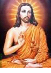 Christ in a Quilon, Kerala “church” that has NO ALTAR and NO CRUCIFIX. Through the hand mudra Jesus conveys that he has achieved enlightenment.