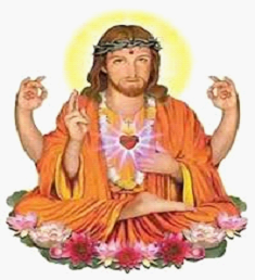 The “Indian” Jesus, but naturally, is in a meditative position. Indian, they say. I say Hindu. Or Buddhist.