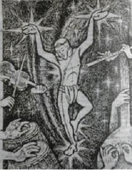 has an illustration of a “dancing”, “crucified” but cross-less Jesus provided by