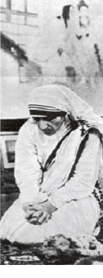 MOTHER TERESA AT PRAYER IN A BUDDHIST TEMPLE