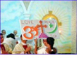 St. Gonsalo Garcia was CRUCIFIED to death, like his Lord Jesus, for his faith. So, how was he honoured at this dedication of the new church building to his memory? By relativising Christianity, the faith he died preaching — juxtapositioning the Cross between the Hindu “OM” and the Islamic crescent.