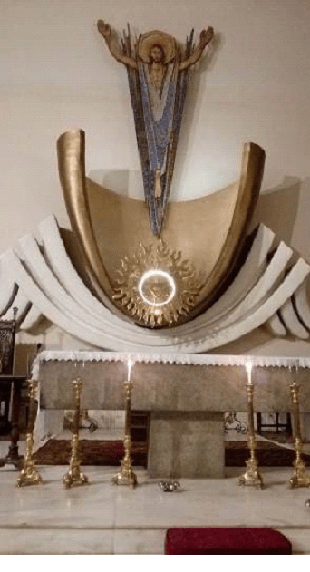 comprising a mosaic image of Jesus Christ rising from the Eucharist