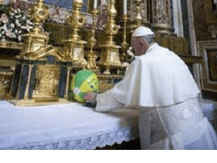 2. If a layman or a priest in parish church had placed a beach ball on the altar I would have been dismayed. But for a Pope to do it…I could hardly believe my eyes when I watched this on the TV news last night.