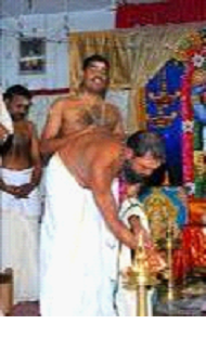 As per the Agama Shastras, a Hindu priest is not expected to cover the upper part of his body while doing puja.