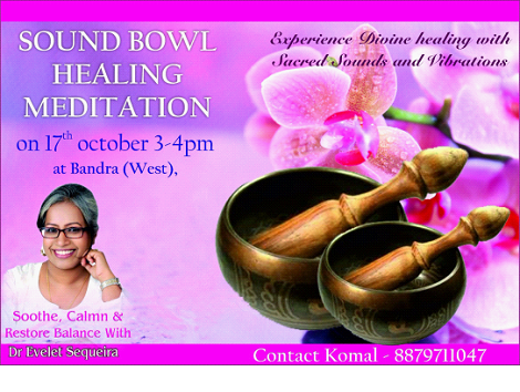 Come attend sound healing session with Tibetan Bowls. Awaken your spirit and clean cellular toxins with Dr. Evelet Sequeira. Venue : Tulips, 19, Union Park, Pali hill, Opposite Out Of The Blue Restaurant, Bandra (West), Mumbai – 40052 Sound Healing With Dr Evelet Sequeira http://circleofpositivity.com/wp/index.php/2015/05/29/sound-healing-with-dr-evelet-sequeira/