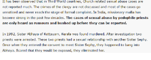 Rape and sexual abuse of nuns (and lay women and boys) by Indian priests