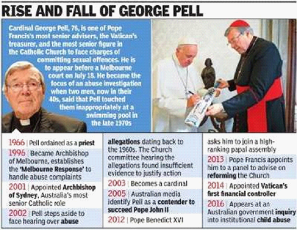 Pell’s high-profile departure, even if only temporary, poses a dilemma for a pontiff who has vowed zero tolerance for such offences. It may also have implications for Francis’ drive to reform Vatican finances, which has been spearheaded by Pell, who also sits on a panel of nine cardinals from around the world who advise the pope.