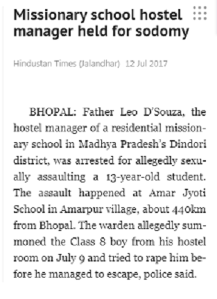 Also at http://www.hindustantimes.com/india-news/mp-missionary-school-headmaster-arrested-for-sexually-assaulting-class-8-boy/story-yw1OZBWHAlQN8399Eyx2gN.html