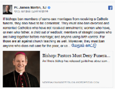 In it, Martin argues Church employees shouldn’t be fired for going against Church teaching by endorsing homosexual acts or openly professing homosexuality because “such firings selectively target LGBT people.” He also says “church leaders should address LGBT people by the term they call themselves.”