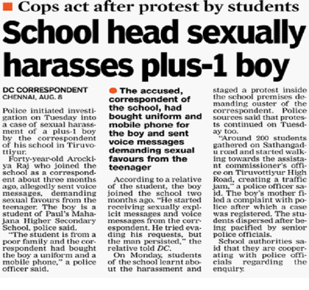 The school is run by the Archdiocese of Madras-Mylapore. The accused school Correspondent is, in all probability, a Catholic priest. He is identified as Arockiya Raj, aged 40. I presume that he is Father Arockiya Raj. In case this is an error, it will be corrected on receipt of more information.