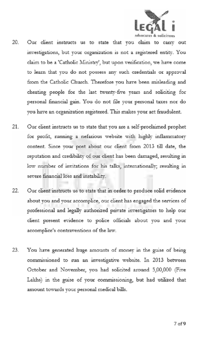 Almost every charge in the “legal notice” against this ministry is pure fantasy. My responses: