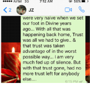 We are in possession of more WhatsApp messages to survivor X from Vincentian priests that provide additional evidence that they knew in their hearts that she had been repeatedly sexually molested and that Y was raped by Fr. Joby Kachappilly and that the priest was a serial predator of women.