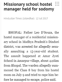 Also at http://www.hindustantimes.com/india-news/mp-missionary-school-headmaster-arrested-for-sexually-assaulting-class-8-boy/story-yw1OZBWHAlQN8399Eyx2gN.html