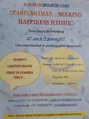 Next workshop — which will be on self-awareness — at Ashirvad: November 4 and 5, cost: Rs 5000.