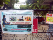 There are two Soham Yoga posters at the Ashirvad gate
