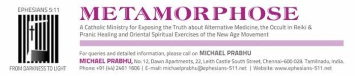 For daily updates on this ministry’s web site, visit: Categories: Alternative Therapy, Eastern Meditation, False Mystics, Hinduisation of the Catholic Church in India, Liturgical Abuses, new age, Ordination of Women Priests Movement in India, PROTESTANTISM, The Catechism of the Catholic Church, Uncategorized
