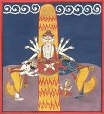 3). The Linga as made up of cosmic substance: Established in the tale of the rivalry of Brahma and Vishnu.