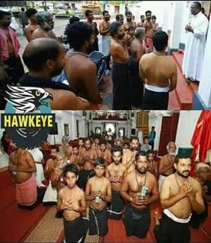 Sabarimalai temple pilgrims (‘ayyapanmar’ in Malayalam). There is a church in Kerala which is frequented by these Hindu pilgrims owing to a myth that a temple used to stand where the church is now.
