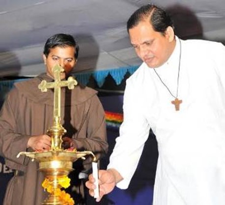 BELGAUM BISHOP DEREK FERNANDES LIGHTS THE KUTHU VILAKKU OR HINDU OIL-LAMP 4 MAY 2019 1