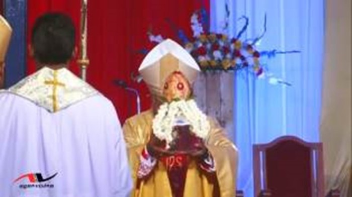 BELGAUM DIOCESE CHURCH HAS A SIVA LINGAM FOR A TABERNACLE, BISHOP DEREK FERNANDES USES IT
