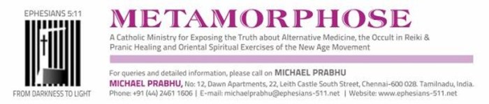 EPHESIANS-511.NET- A Roman Catholic Ministry Exposing Errors in the Indian Church Michael Prabhu, METAMORPHOSE, #12,Dawn Apartments, 22,Leith Castle South Street, Chennai – 600 028, Tamilnadu, India. Phone: +91 (44) 24611606 E-mail: michaelprabhu@vsnl.net, http://www.ephesians-511.net